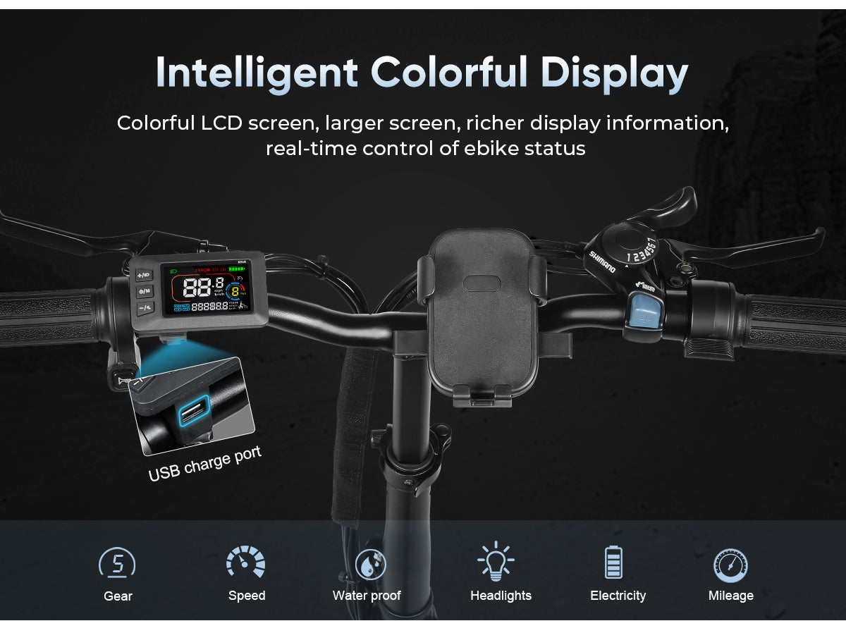 With colorful display shows real-time speed, battery, and distance data, with 5 pedal assist levels for a personalized ride.