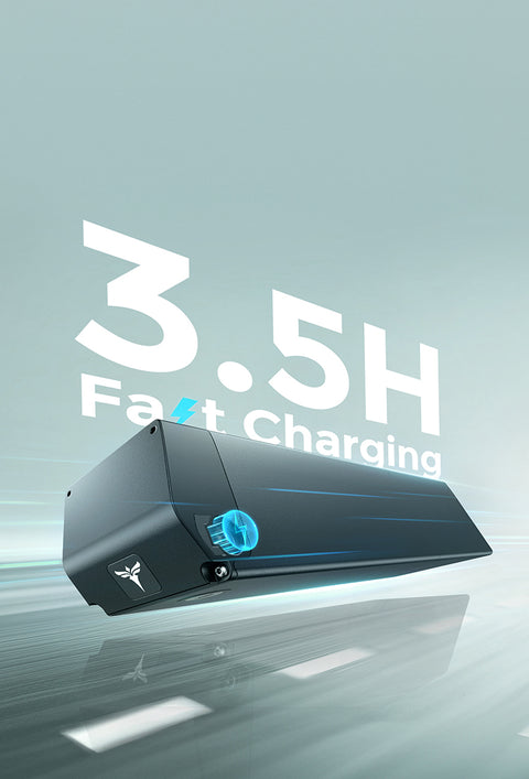Plug in after breakfast, hit the trails by lunch—3.5 hours is all it takes for a full charge with the included 4A fast charger.