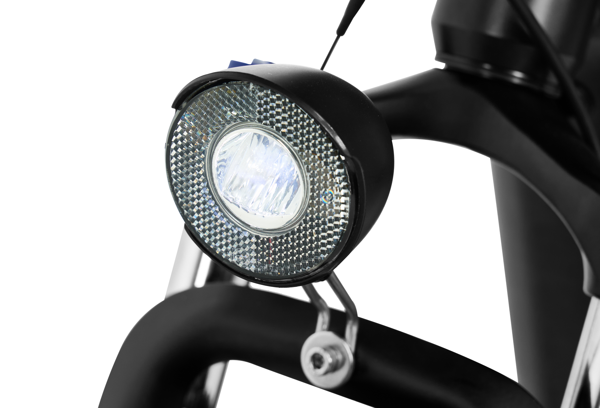 Safety-First Build: Mechanical disc brakes, front/rear LED lights, and IP54-rated water resistance.